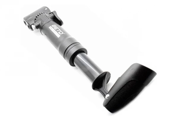 Cette mini pompe haute pression dispose d’une tête double tête brevetée pour valve Schrader, Presta et Dunlop à enclenchement rapide. Avec sa poignée pivotante et son support de cadre, la pompe de vélo se range facilement en prenant un minium de place.