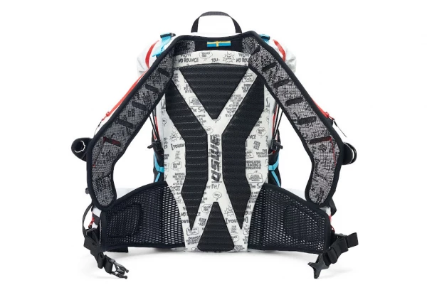 Système de harnais NDM 2.1 sans rebond. L’étirement des sangles thoraciques se dilate avec la poitrine pendant l’effort physique, permettant un ajustement serré et conforme constant. Les bretelles sont conçues de manière ergonomique pour une répartition confortable et fluide du sac à dos sur les épaules.