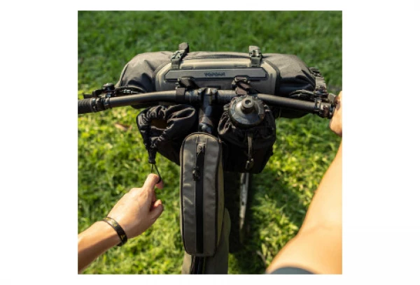 Une sacoche de guidon pratique pour ranger des barres de céréales, un téléphone, un petit appareil photo, une bouteille supplémentaire ou tout ce dont vous avez besoin à portée de main. Une poche latérale en filet supplémentaire offre plus d’espace pour les petits objets.