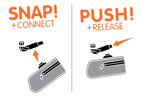 Ingénieuse et facile d’utilisation, la sacoche de selle Fidlock Push de 600 ml permet de transporter vos accessoires essentiels en toute sécurité. La technologie innovante “Push” libère la sacoche grâce à une simple pression du pouce, même avec des gants. Terminées les manipulations longues et fastidieuses des sangles ou des bandes Velcro sales.