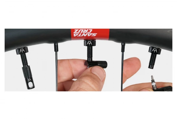 La grande base en aluminium et caoutchouc souple créent une parfaite étanchéité à l’air sur les perçages de valves jusqu’à 8 mm de diamètre, elles sont jolies avec les logos gravés laser,